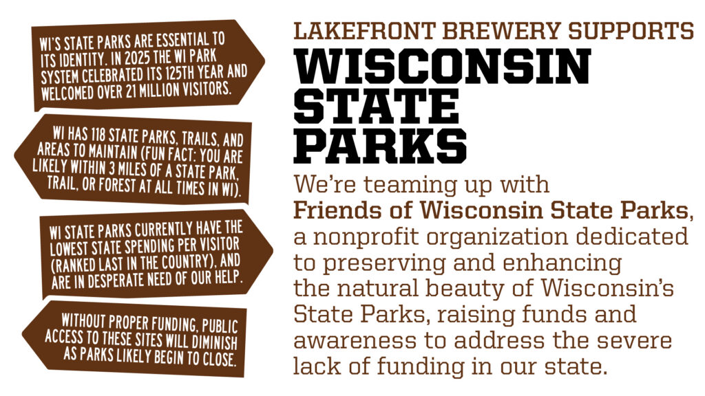 Available exclusively at our Beer Hall and online for scheduled pick up. Celebrate it’s availability on Saturday, May 2nd when we will be joined by representatives from Friends of Wisconsin State Parks. See the event HERE.